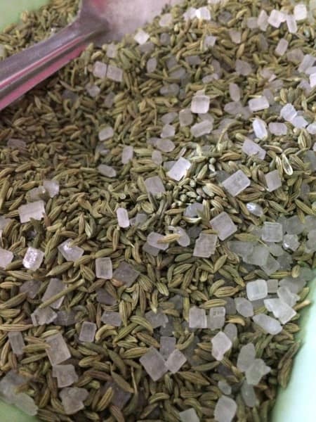 An Indian restaurant in the west provides a plate or bowl of sugar coated candy at the end of a meal. Usually this is something fennel flavoured covered in a sugary coating, but, I’ve never been a fan. Here in India that is sometimes available, however, you will more likely find the straight fennel seed. Or a combination. It’s palate cleansing and refreshing.
