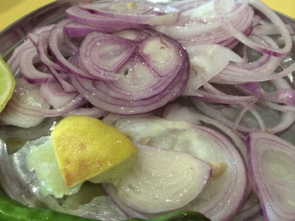 It’s here in Lucknow that we discover something new in our Indian food adventures. The side dish of onion. Sometimes known as onion lachcha, it’s and served with salt, pepper and wedges of lemon, it’s a Moorish and addictive addition to the way in which I now eat Indian food. Squeeze the lemon over the thinly sliced onion and sprinkle with salt and pepper to taste. It’s so simple, yet amazing.