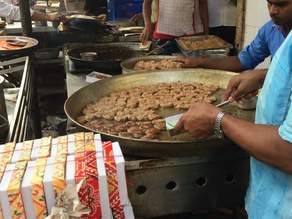We visited the original Tundays in the Chowk (market area). It’s seriously grungy in a century old location. They only serve beef kebabs here. Glorious paratha is combined with an incredible show, as you watch your food being made.